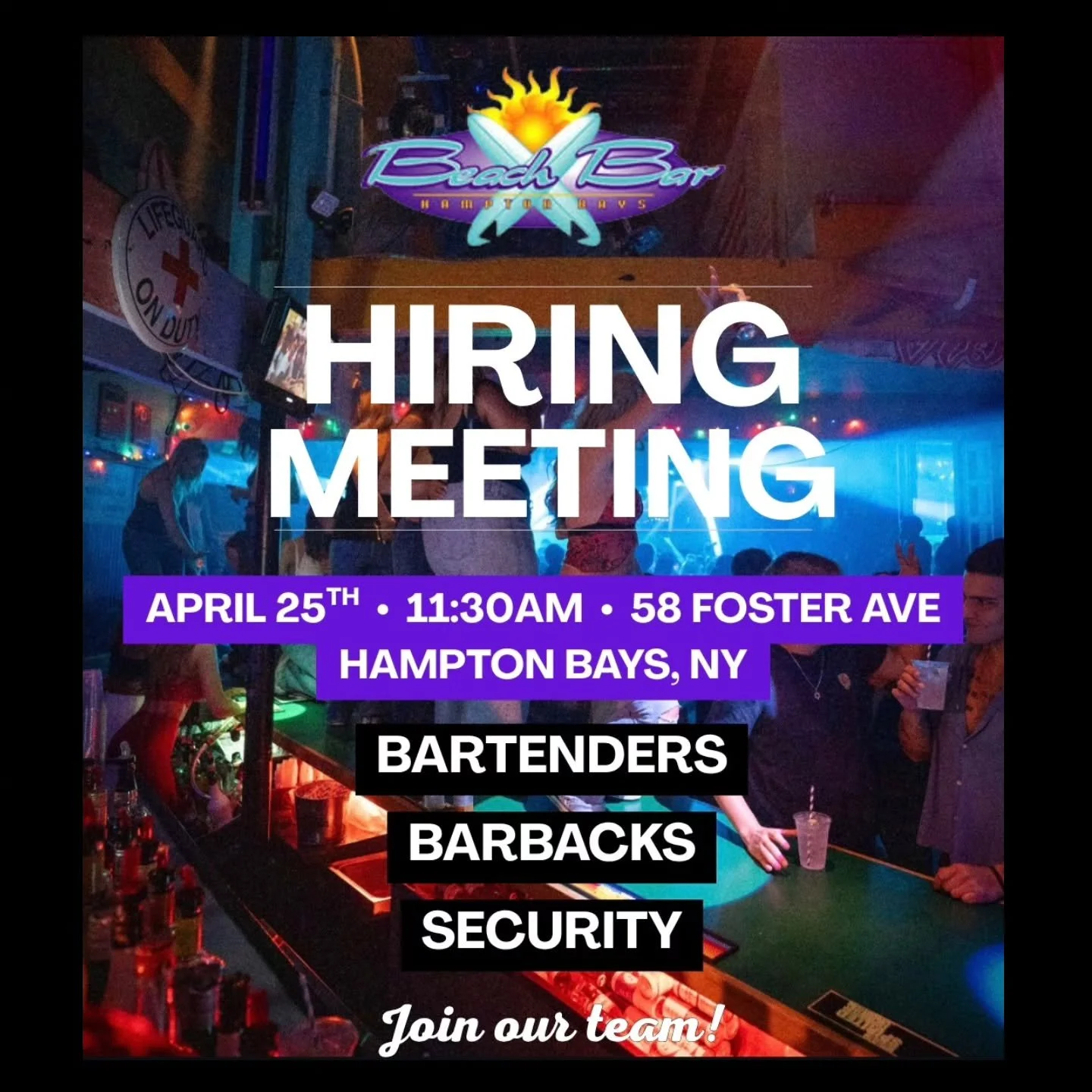 Looking for a job this summer? We’re always looking for a hardworking individual to help make Beach Bar the top summer destination for the season.